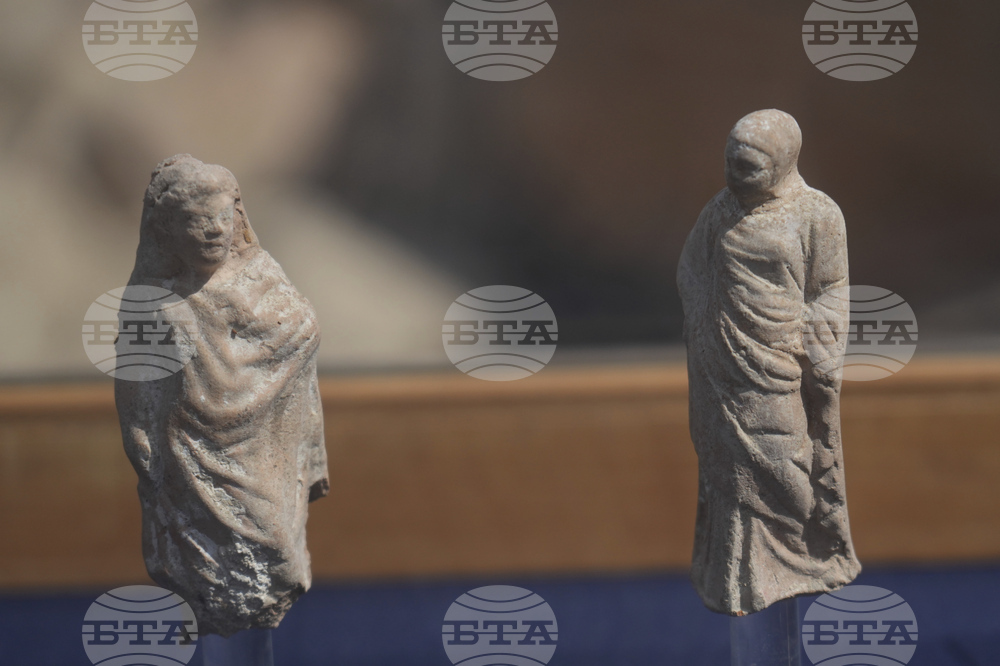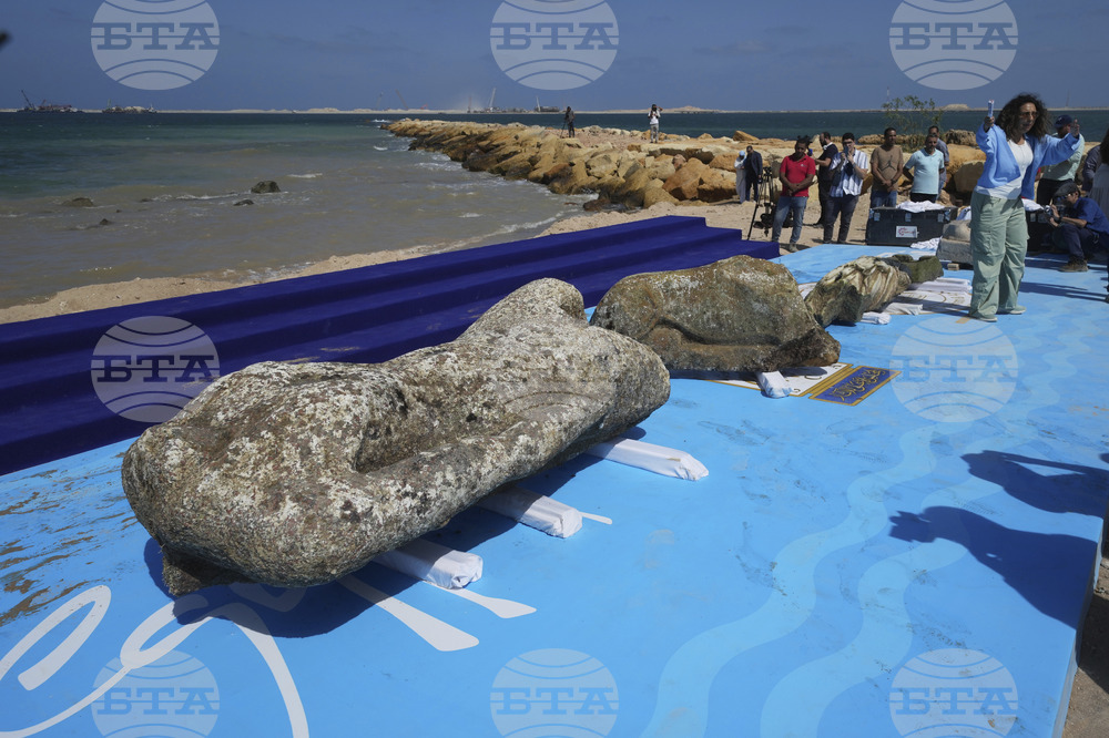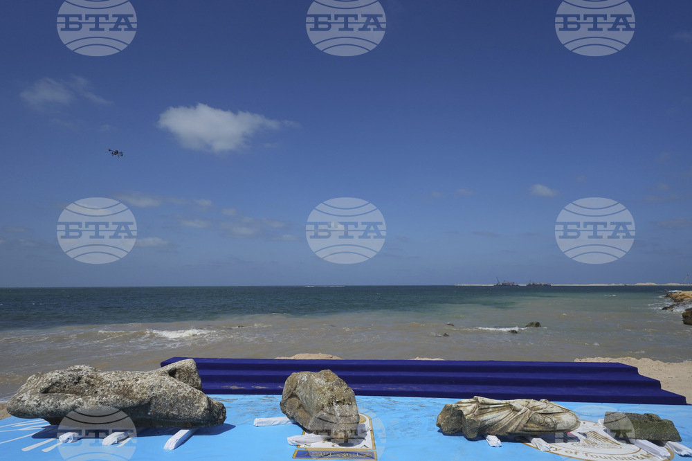 Ancient artifacts are on display after they were lifted out of the water in Abu Qir Bay at he Mediterranean city of Alexandria, Egypt, Thursday, Aug. 21, 2025. (AP Photo/Amr Nabil)