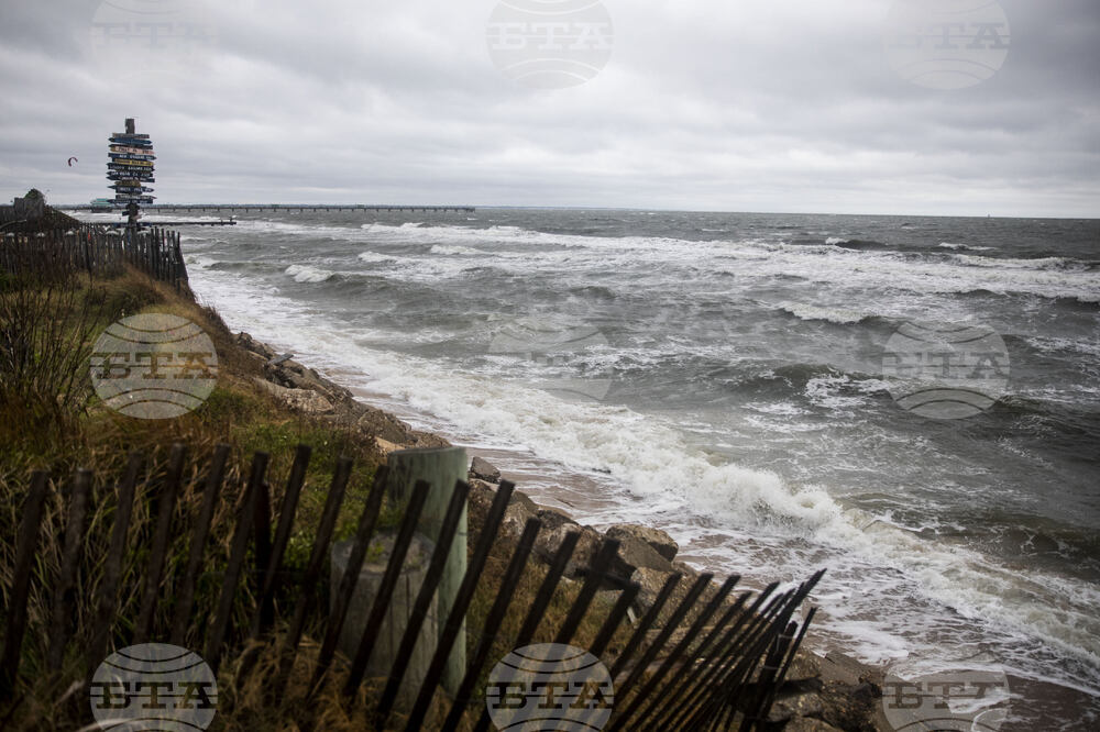 A beachgoer launches a kite at White Crest Beach in Wellfleet, Mass., Thursday, Aug. 21, 2025, in strengthening winds. (Erin Clark/The Boston Globe via AP)