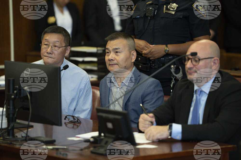 Real estate developer Tian Li, center, appears for corruption charges in Manhattan Supreme Court, in New York Thursday, Aug. 21, 2025. (Curtis Means/Pool Photo via AP)