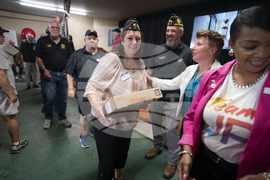 IMAGE DISTRIBUTED FOR COMCAST - American Legion Post Commander Frank Carson greets guests during a Comcast Lift Zone Launch on Friday, August 22, 2025 at American Legion Post 26 in Aiken, S.C. (Sean Rayford/AP Content Services for Comcast)