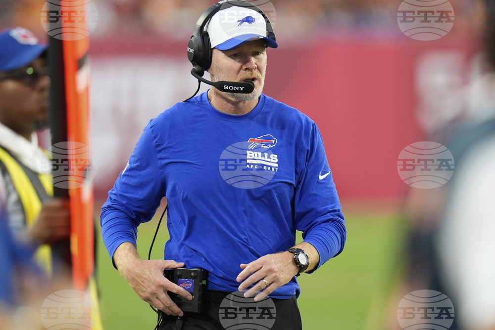 Buffalo Bills head coach Sean McDermott watches during the first half of an NFL preseason football game against the Tampa Bay Buccaneers, Saturday, Aug. 23, 2025, in Tampa, Fla. (AP Photo/Chris O'Meara)