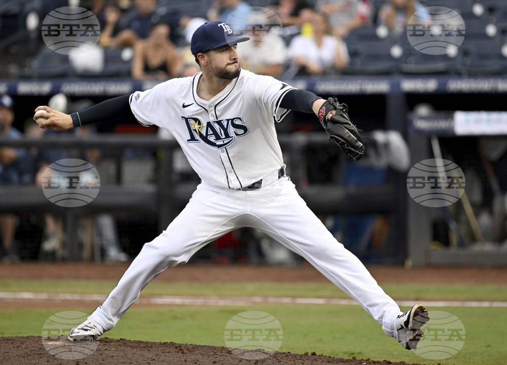 Tampa Bay Rays pitcher Brian Van Belle throws during the eighth inning of a baseball game against the St. Louis Cardinals, Sunday, Aug. 24, 2025, in Tampa, Fla. (AP Photo/Jason Behnken)