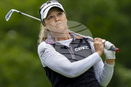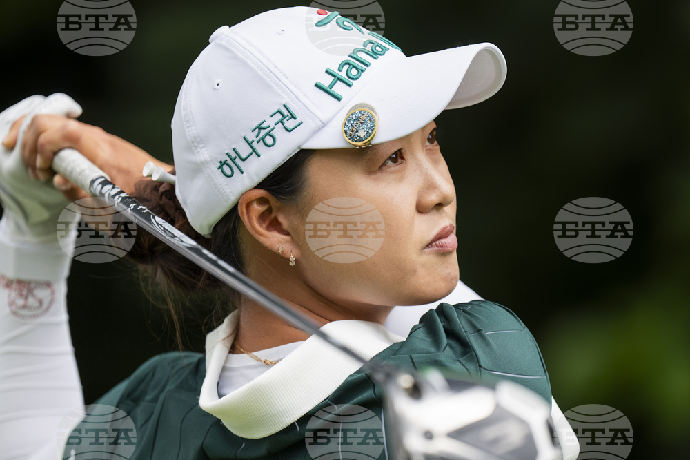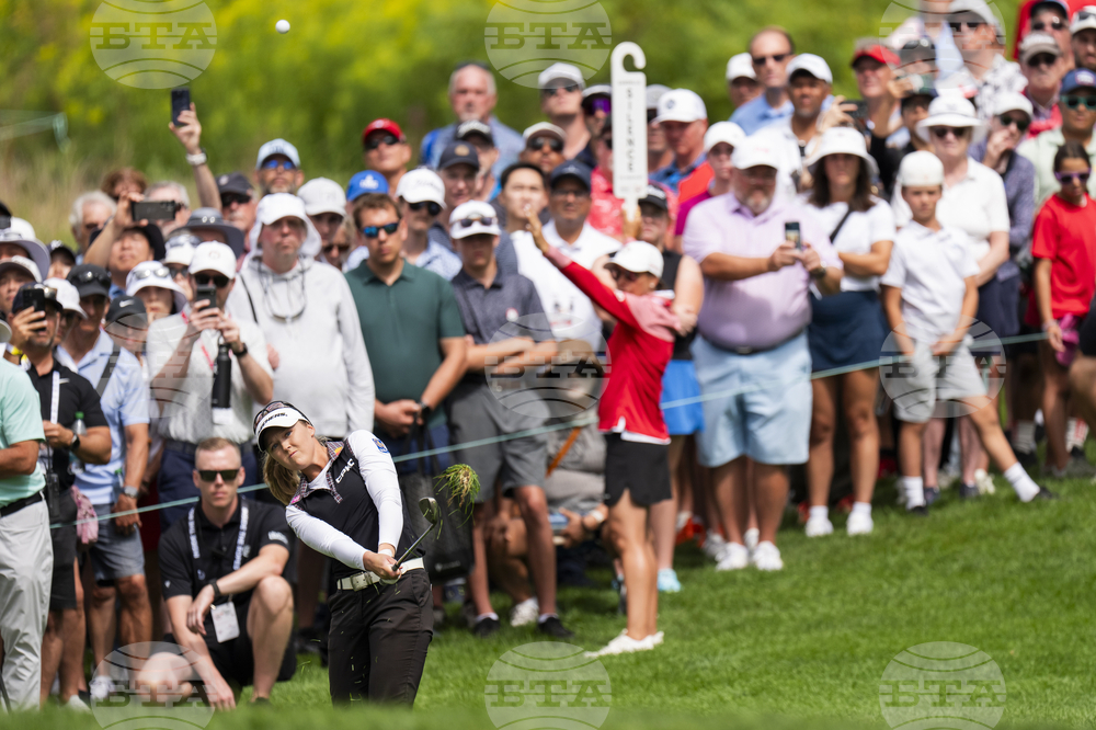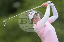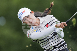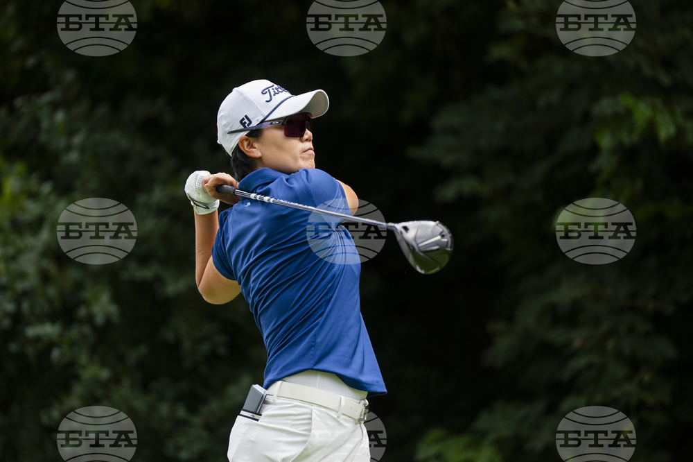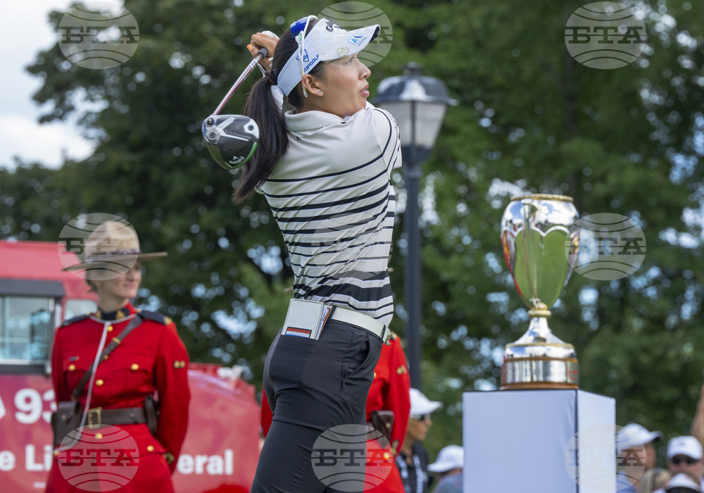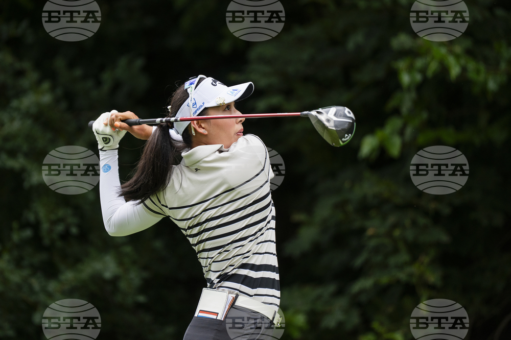 Jeongeun Lee, of Thailand, drives the fifth hole during the fourth round of the CPKC Women's Open at the Mississauga Golf and Country Club in Mississauga, Ontario, Sunday, Aug. 24, 2025. (Thomas Skrlj/The Canadian Press via AP)
