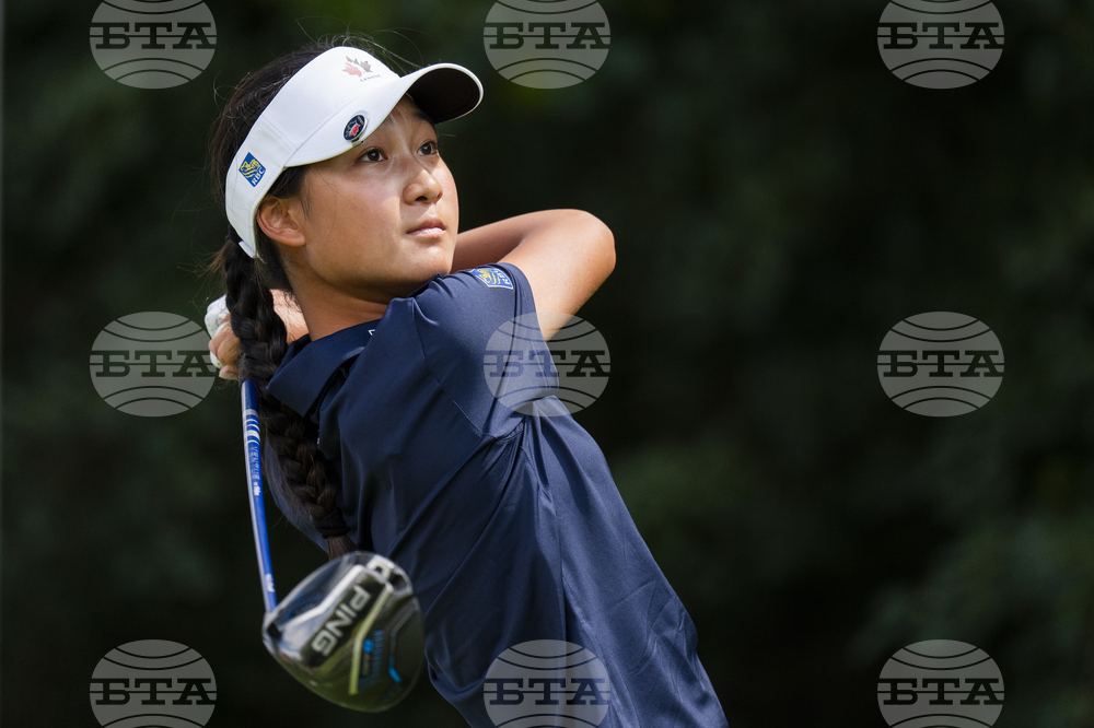 Grace Kim, of Australia, drives the fifth hole during the fourth round of the CPKC Women's Open at the Mississauga Golf and Country Club in Mississauga, Ontario, Sunday, Aug. 24, 2025. (Thomas Skrlj/The Canadian Press via AP)
