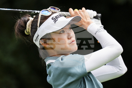 Akie Iwai, of Japan, tees off on the fifth hole during the fourth round of the CPKC Women's Open at the Mississauga Golf and Country Club in Mississauga, Ontario, Sunday, Aug. 24, 2025. (Thomas Skrlj/The Canadian Press via AP)
