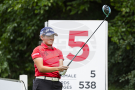 Mao Saigo, of Japan, drives the fifth hole during the fourth round of the CPKC Women's Open at the Mississauga Golf and Country Club in Mississauga, Ontario, Sunday, Aug. 24, 2025. (Thomas Skrlj/The Canadian Press via AP)