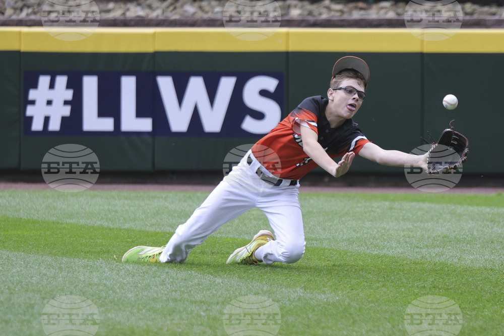Fairfield, Conn.'s Boden Dunlap makes a diving catch during the first inning of the Little League World Series third place baseball game against Aruba, Sunday, Aug. 24, 2025, in South Williamsport, Pa. (AP Photo/Jared Freed)