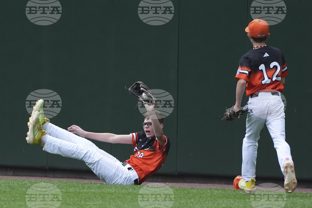 Fairfield, Conn.'s Boden Dunlap reacts after a catch during the first inning of the Little League World Series Third Place baseball game against Aruba, Sunday, Aug. 24, 2025, in South Williamsport, Pa. (AP Photo/Caleb Craig)