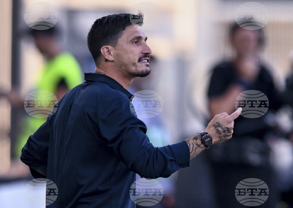 Cagliari's coach Fabio Pisacane during a Serie A soccer match between Cagliari and Fiorentina at the Unipol Domus in Cagliari, Italy, Sunday, Aug. 24 2025. (Gianluca Zuddas/LaPresse via AP)