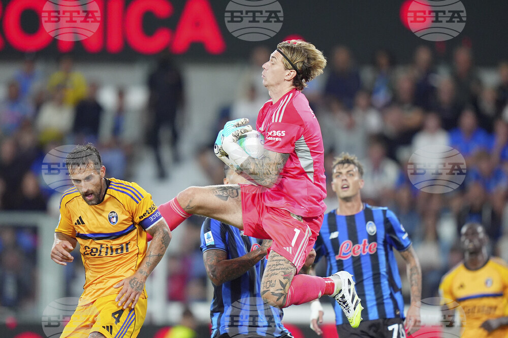 Pisa's Adrian Semper makes a save during the Italian Serie A soccer match between Atalanta and Pisa at Gewiss Stadium in Bergamo, Italy, Sunday, Aug. 24, 2025. (Spada/LaPresse via AP)