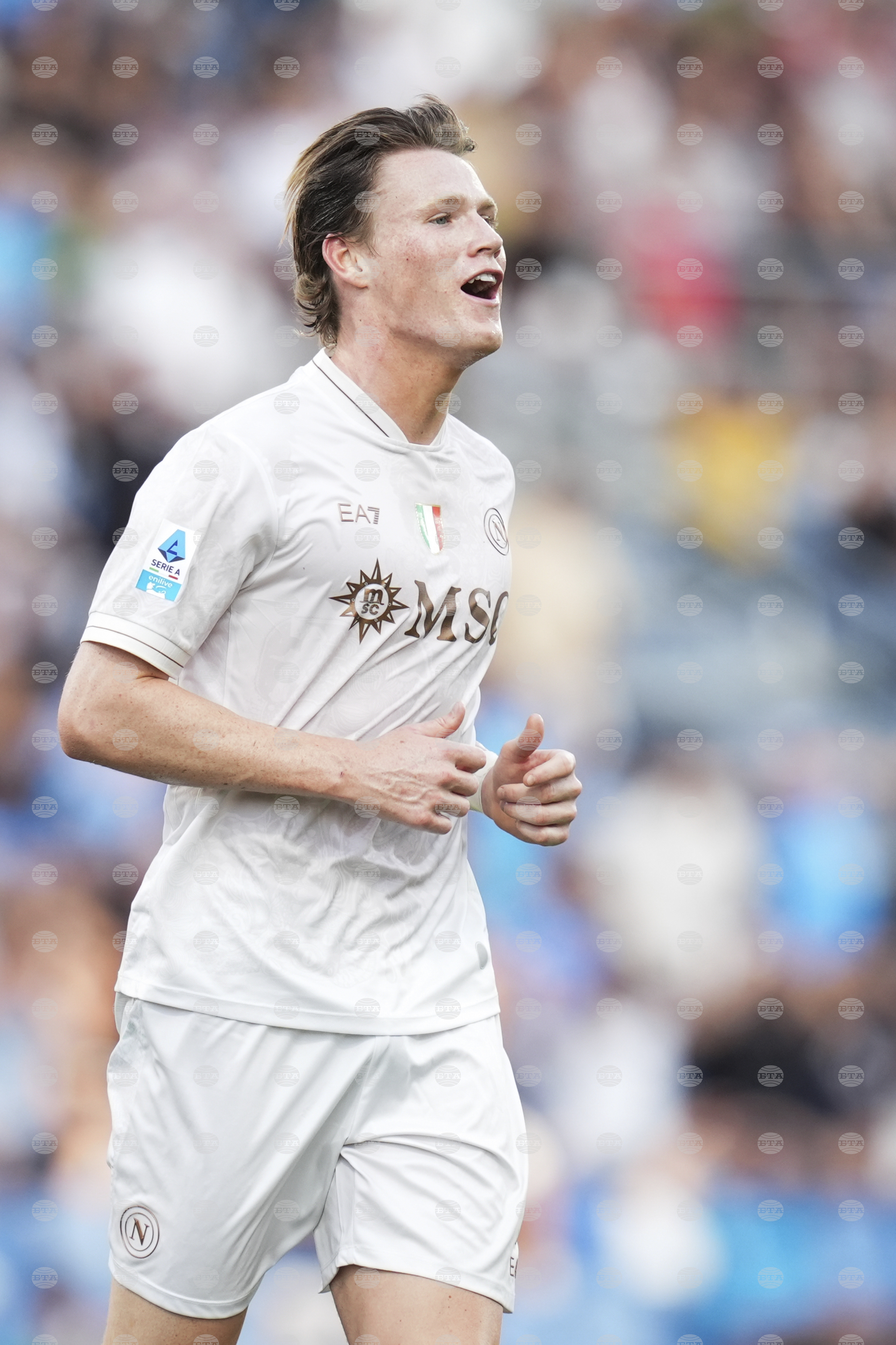 Napoli's Scott Mc Tominay in action during the Serie A soccer match between Sassuolo and Napoli at the Mapei Stadium Città del Tricolore in Reggio Emilia, Italy, on Saturday, August 23, 2025. (Massimo Paolone/LaPresse via AP)