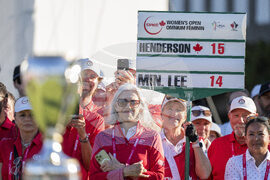 Minjee Lee, of Australia, putts on the 18th hole during the fourth round of the CPKC Women's Open golf tournament at the Mississauga Golf and Country Club in Mississauga, Ontario, Sunday, Aug. 24, 2025. (Thomas Skrlj/The Canadian Press via AP)