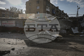 A view of the town of Kostiantynivka, the site of heavy battles with Russian troops in the Donetsk region, Ukraine, on Sunday, Aug. 24, 2025. (AP Photo/Yevhen Titov)
