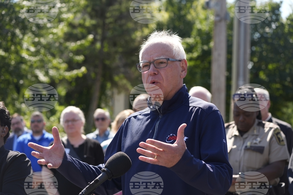 Minnesota Gov. Tim Walz speaks outside the Annunciation Catholic School following a shooting Wednesday, Aug. 27, 2025, in Minneapolis. (AP Photo/Bruce Kluckhohn)