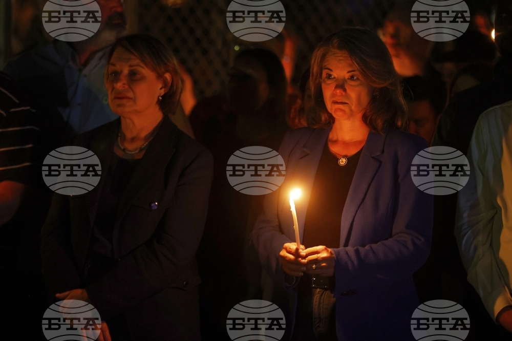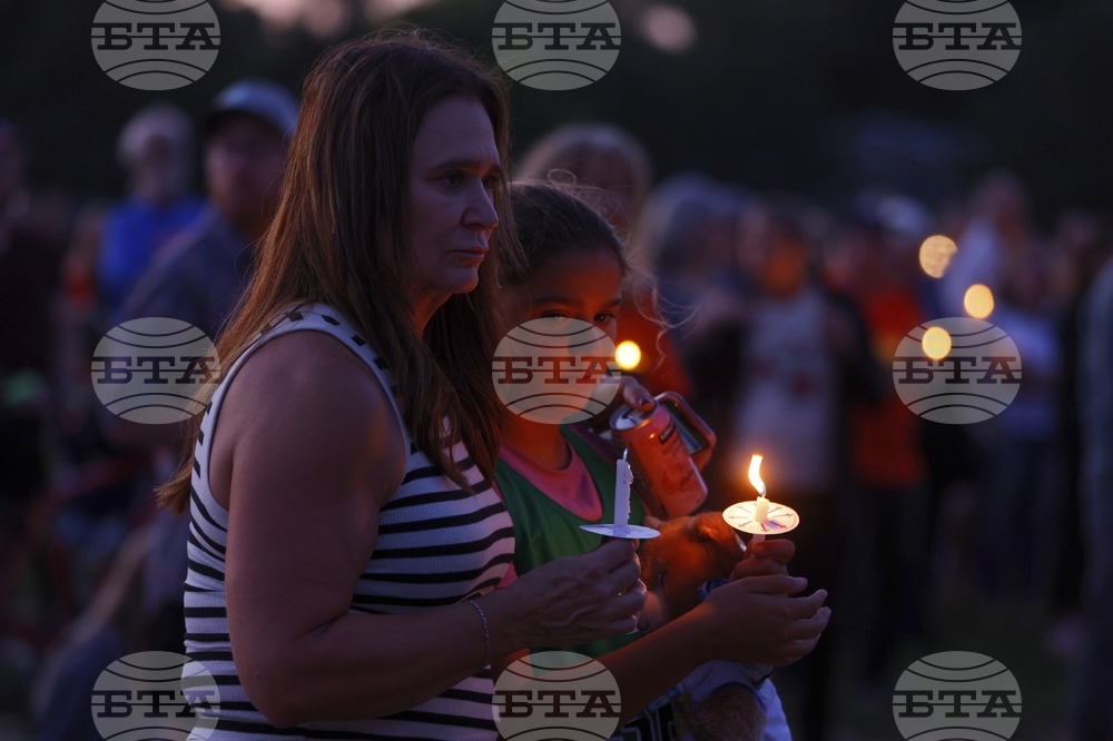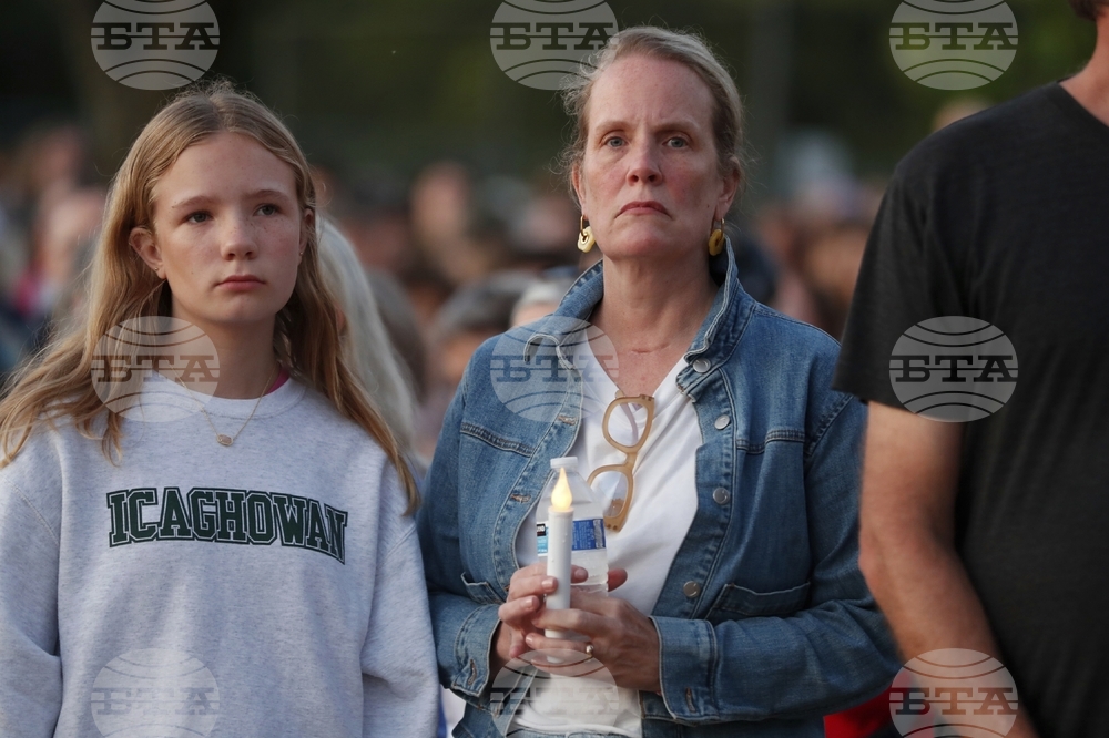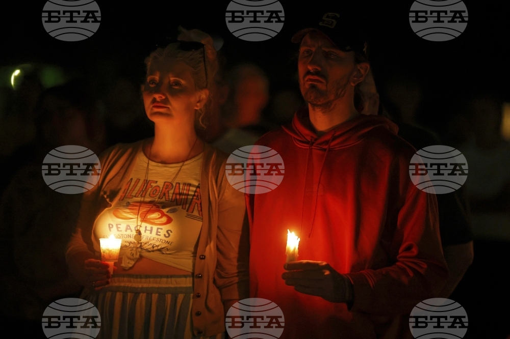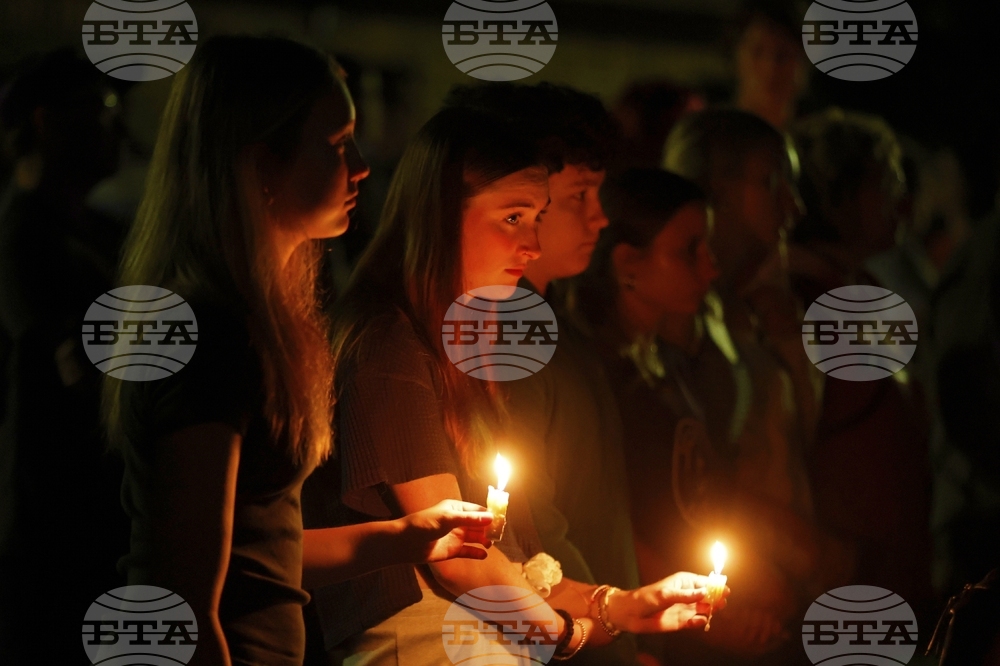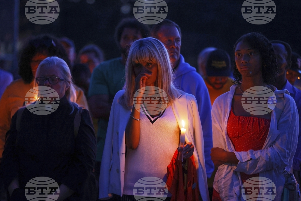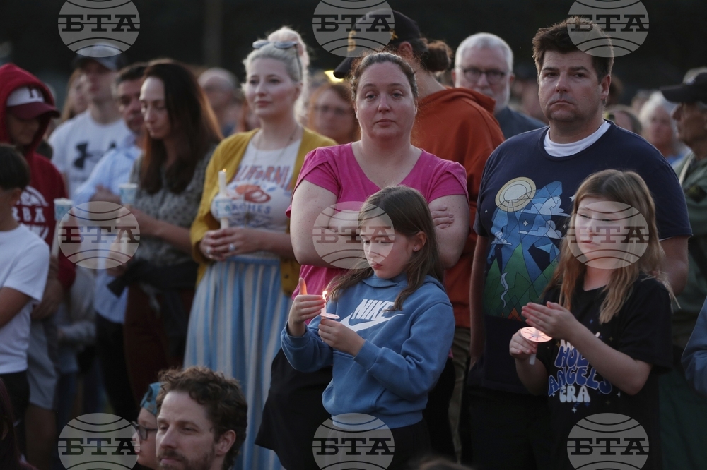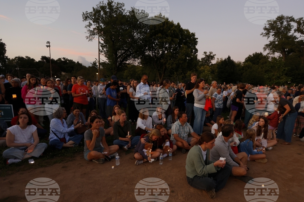 People gather at a vigil at Lynnhurst Park after a shooting at the Annunciation Catholic School Wednesday, Aug. 27, 2025, in Minneapolis. (AP Photo/Bruce Kluckhohn)