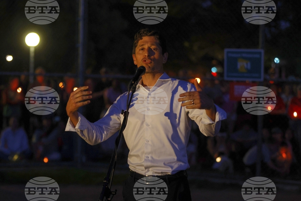 Minneapolis Mayor Jacob Frey speaks as people gather at a vigil at Lynnhurst Park after a shooting at the Annunciation Catholic School Wednesday, Aug. 27, 2025, in Minneapolis. (AP Photo/Bruce Kluckhohn)