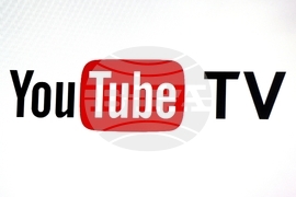 FILE - YouTube TV logo is seen at the YouTube Space LA in Los Angeles, Feb. 28, 2017. (AP Photo/Reed Saxon, File)