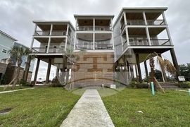 Elevated new houses stand west of downtown Aug. 12, 2025, in Gulfport, Miss. (AP Photo/Jeff Amy)