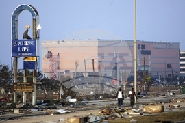FILE - Tractor trailers lay strewn in front of the Grand Casino which was destroyed by Hurricane Katrina in Gulfport, Miss., Aug. 31, 2005. (AP Photo/M. Spencer Green, File)