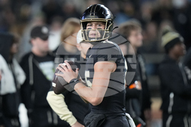 FILE - Purdue quarterback Ryan Browne looks to throw during warmups before playing Oregon in an NCAA college football game in West Lafayette, Ind., Oct. 18, 2024. (AP Photo/AJ Mast, File)