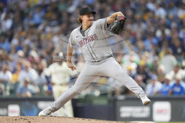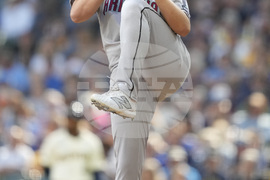 Milwaukee Brewers' Erick Fedde pitches during the fifth inning of a baseball game against the Arizona Diamondbacks, Wednesday, Aug. 27, 2025, in Milwaukee. (AP Photo/Aaron Gash)