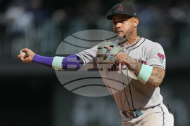 Arizona Diamondbacks second baseman Ketel Marte throws out Milwaukee Brewers' Christian Yelich during the ninth inning of a baseball game Thursday, Aug. 28, 2025, in Milwaukee. (AP Photo/Kayla Wolf)