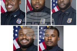 FILE - This combination of images provided by the Memphis, Tenn., Police Department shows, from left top, Police Officers Tadarrius Bean, Demetrius Haley, Emmitt Martin III, bottom row from left, Desmond Mills, Jr. and Justin Smith. (Memphis Police Department via AP, File)