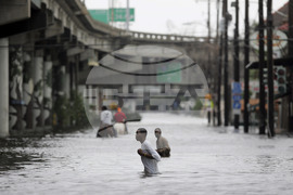 FILE - New Orleans residents walk through chest deep floodwater after Hurricane Katrina made landfall on the Louisiana coast on Aug. 29, 2005. (AP Photo/Dave Martin, File)