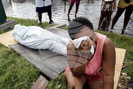 FILE - Evelyn Turner cries alongside the body of her common-law husband, Xavier Bowie, after he died in New Orleans, Aug. 30, 2005. (AP Photo/Eric Gay)