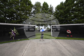 A woman walks past tombs of unidentified bodies during a wreath laying event to commemorate the 20th anniversary of Hurricane Katrina, at the Hurricane Katrina Memorial in Charity Hospital Cemetery in New Orleans, Friday, Aug. 29, 2025. (AP Photo/Gerald Herbert)