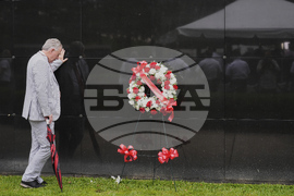 Gary Wainwright pauses at tombs for unidentified victims during a wreath laying event to commemorate the 20th anniversary of Hurricane Katrina, at the Hurricane Katrina Memorial in Charity Hospital Cemetery in New Orleans, Friday, Aug. 29, 2025. (AP Photo/Gerald Herbert)