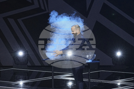 Portuguese magician and TV producer Mario Daniel performs before the Europa League and Conference League soccer league phase draw in Monaco, Friday, Aug. 29, 2025. (AP Photo/Laurent Cipriani)
