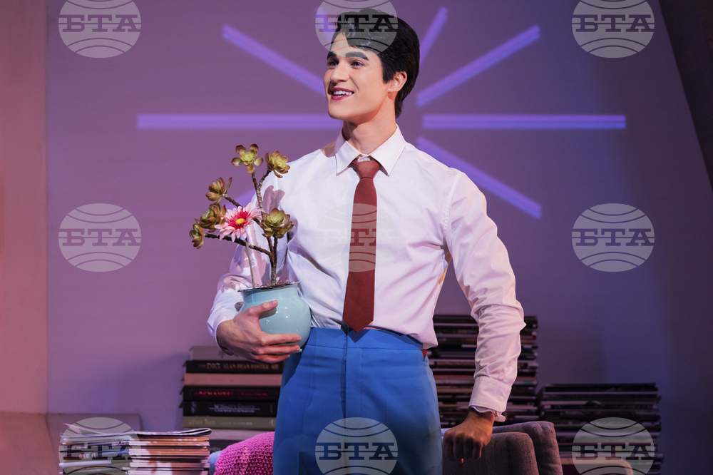 Darren Criss appears during a performance of "Maybe Happy Ending" on Broadway in New York on Oct. 15, 2014. (Evan Zimmerman and Matthew Murphy via AP)