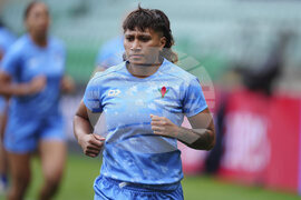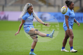 Samoa's Ana Afuie during a team run at cinch Stadium at Franklin's Gardens, Northampton, England, Friday, Aug. 29, 2025. (Mike Egerton/PA via AP)