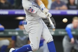 Chicago Cubs' Dansby Swanson hits a two-run home run against the Colorado Rockies during the second inning of a baseball game Thursday, Aug. 29, 2025, in Denver. (AP Photo/Jack Dempsey)