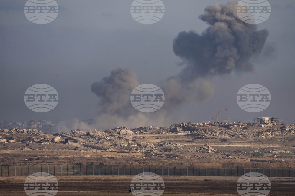 Smokes rise to the sky following Israeli military strikes in the northern Gaza Strip, as seen from southern Israel, Sunday, Aug. 31, 2025. (AP Photo/Maya Levin)