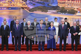 Leaders pose for a family photo at the Shanghai Cooperation Organization (SCO) summit in Tianjin, China, Monday, Sept. 1, 2025. (Sergei Bobylev, Sputnik, Kremlin Pool Photo via AP)