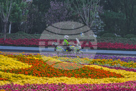 A police officer patrols on motorcycle outside the venue of the Shanghai Cooperation Organization (SCO) summit in Tianjin, China, Monday, Sept. 1, 2025. (AP Photo/ Rafiq Maqbool)