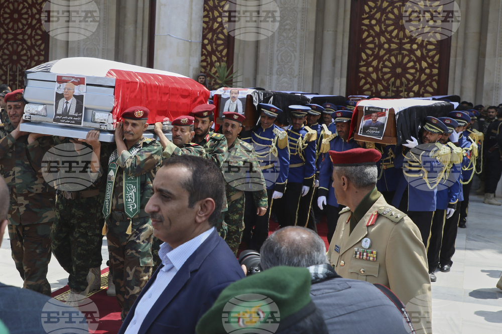 Honor guards carry the coffin of Houthi minister of foreign affairs Jamal Aamer and the coffins of other officials killed in Israeli airstrikes on Thursday, during a funeral ceremony at the Shaab Mosque in Sanaa, Yemen, Monday, Sept. 1, 2025. (AP Photo/Osamah Abdulrahman)
