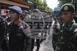 Police officers walk past soldiers during a peace rally following days of violent protests against lavish allowances given to parliament members, in Jakarta, Indonesia, Tuesday, Sept. 2, 2025. (AP Photo/Dita Alangkara)