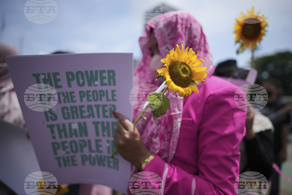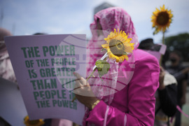 An activist holds a sun flower during a rally denouncing violence allegedly committed by the police in days of protests against lavish allowances given to the members of the parliament, in Jakarta, Indonesia, Wednesday, Sept. 3, 2025. (AP Photo/Dita Alangkara)