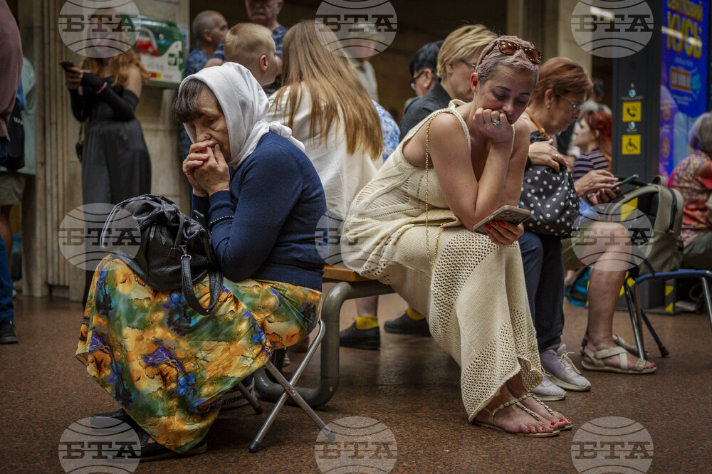 People rest in a metro station, being used as a bomb shelter, during a Russian attack in Kyiv, Ukraine, Tuesday, Sept. 2, 2025. (AP Photo/Dan Bashakov)