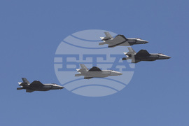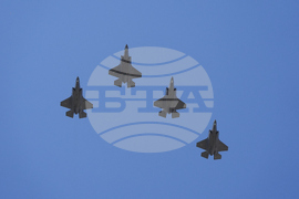 Military aircraft flyover the White House in Washington as President Donald Trump meets with Polish President Karol Nawrocki, Wednesday, Sept. 3, 2025. (AP Photo/Rahmat Gul)