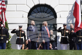 President Donald Trump Polish President Karol Nawrocki watch a military airplane flyover at the White House, Wednesday, Sept. 3, 2025, in Washington. (AP Photo/Evan Vucci)