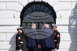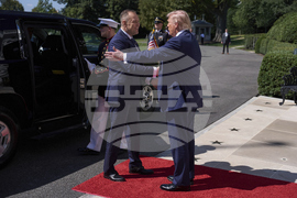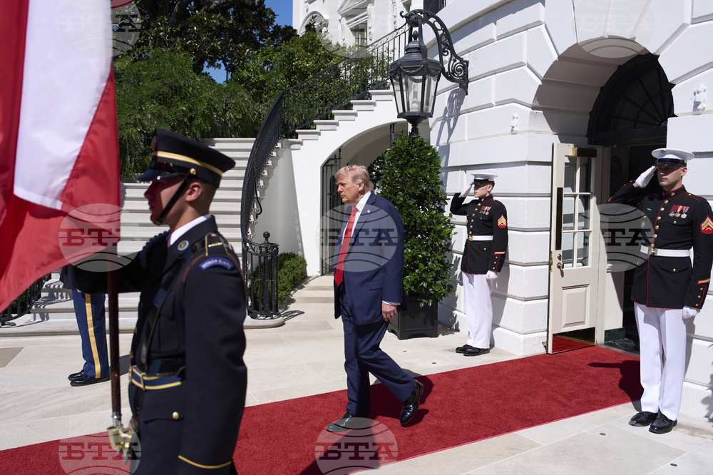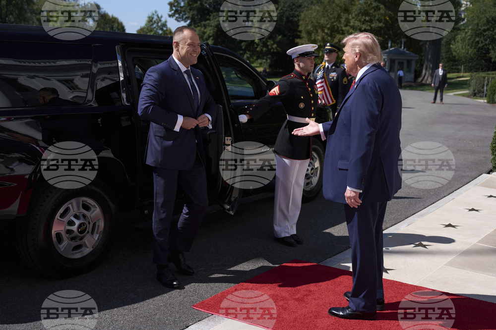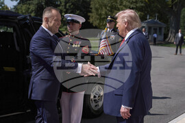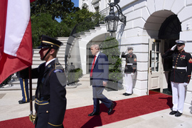 President Donald Trump arrives to greet Polish President Karol Nawrocki at the White House, Wednesday, Sept. 3, 2025, in Washington. (AP Photo/Evan Vucci)