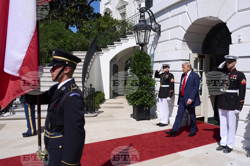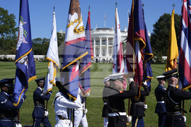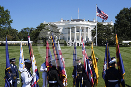 Member of the Military Honor Guard gathering on the South Lawn of the White House in Washington as they wait for the arrival of Polish President Karol Nawrocki, Wednesday, Sept. 3, 2025. (AP Photo/Alex Brandon)