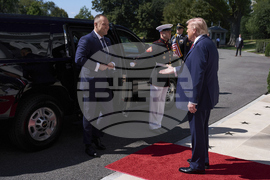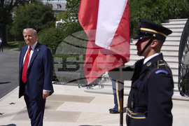 President Donald Trump waits for the arrival of Polish President Karol Nawrocki at the White House, Wednesday, Sept. 3, 2025, in Washington. (AP Photo/Evan Vucci)