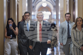 House Oversight Committee Chairman James Comer, R-Ky., walks to a closed-door meeting with victims in the Jeffrey Epstein sex trafficking case investigation, at the Capitol in Washington, Tuesday, Sept. 2, 2025. (AP Photo/J. Scott Applewhite)