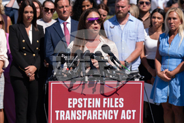 Haley Robson speaks during a news conference regarding the release of the Jeffrey Epstein files, on Capitol Hill, Wednesday, Sept. 3, 2025, in Washington. (AP Photo/Rod Lamkey, Jr.)