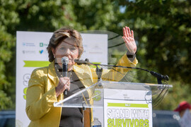 Teresa J. Helm speaks at a Stand with Survivors Rally Wednesday, Sept. 3, 2025, in Washington. (AP Photo/Rod Lamkey, Jr.)